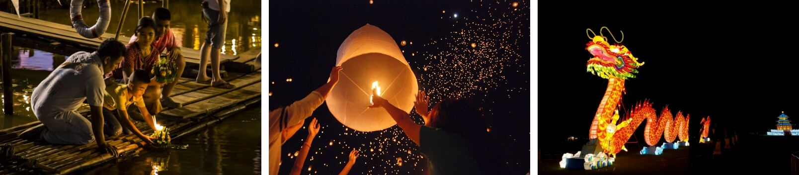 During Bon Om Touk, the Festival of Water to Loy Krathong, the Festival of Lights.